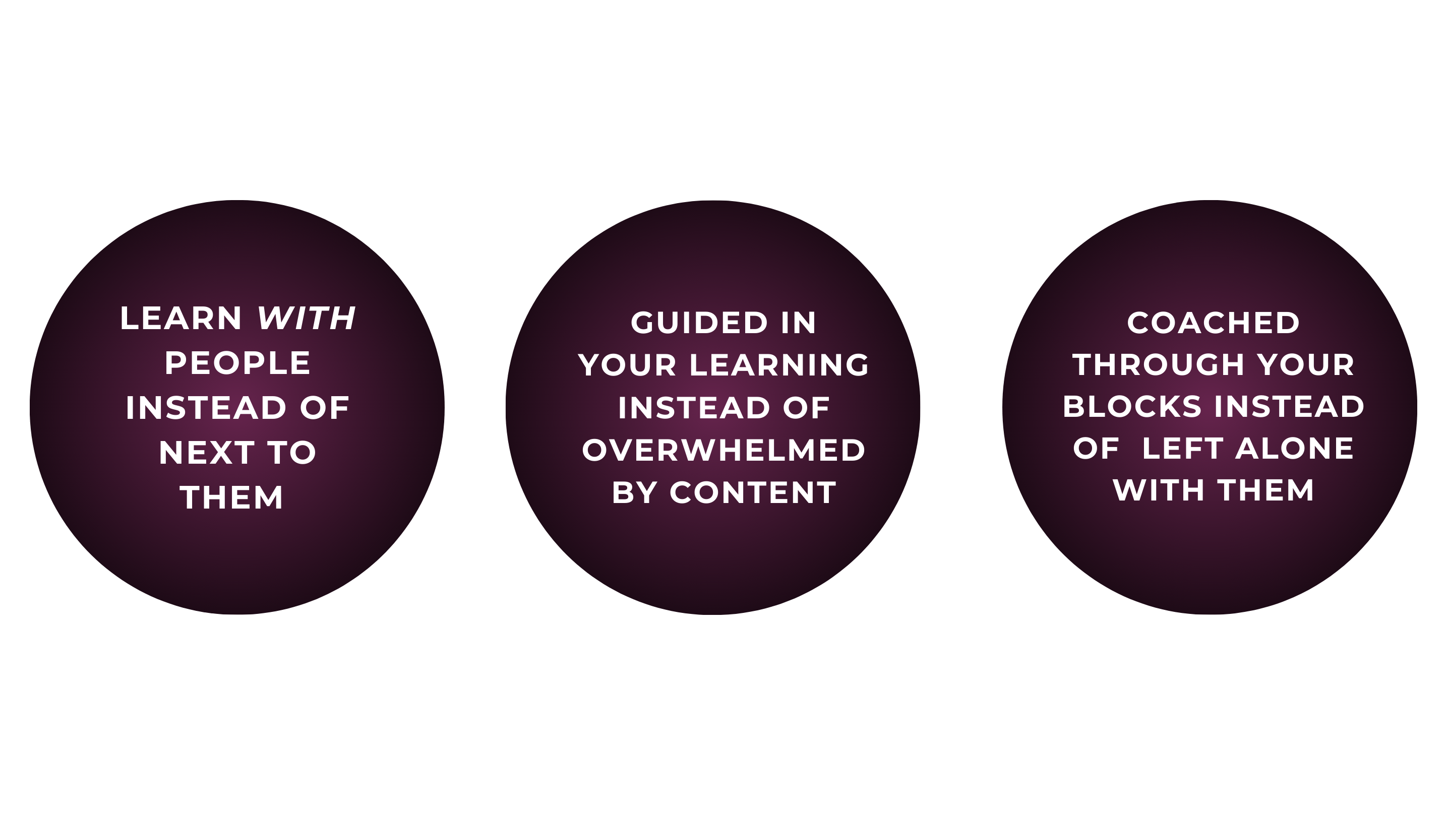Circle is the community hub where the replay library, Q&As, community discussions, coaching, and all communication live. It's your home base between live classes.